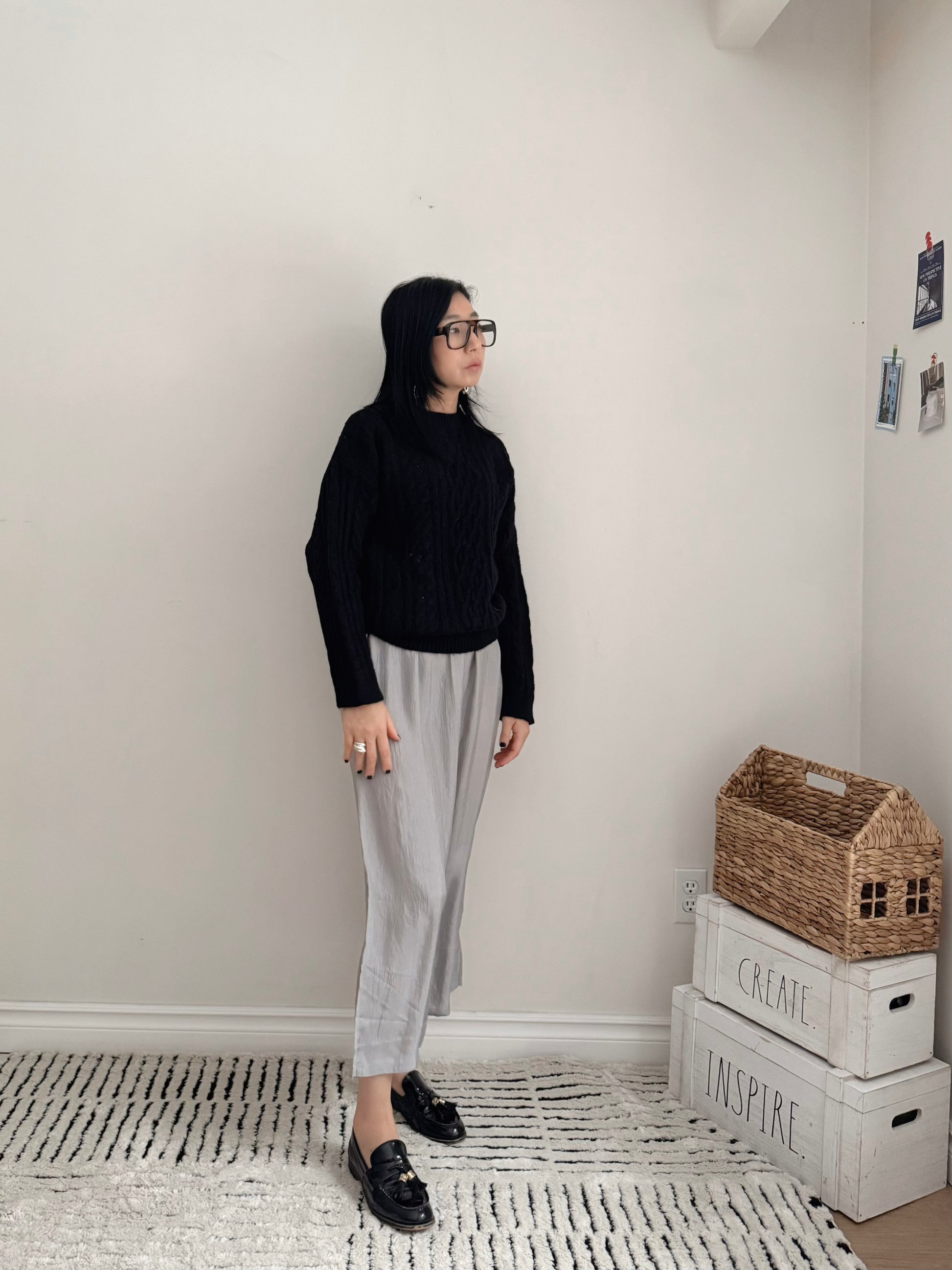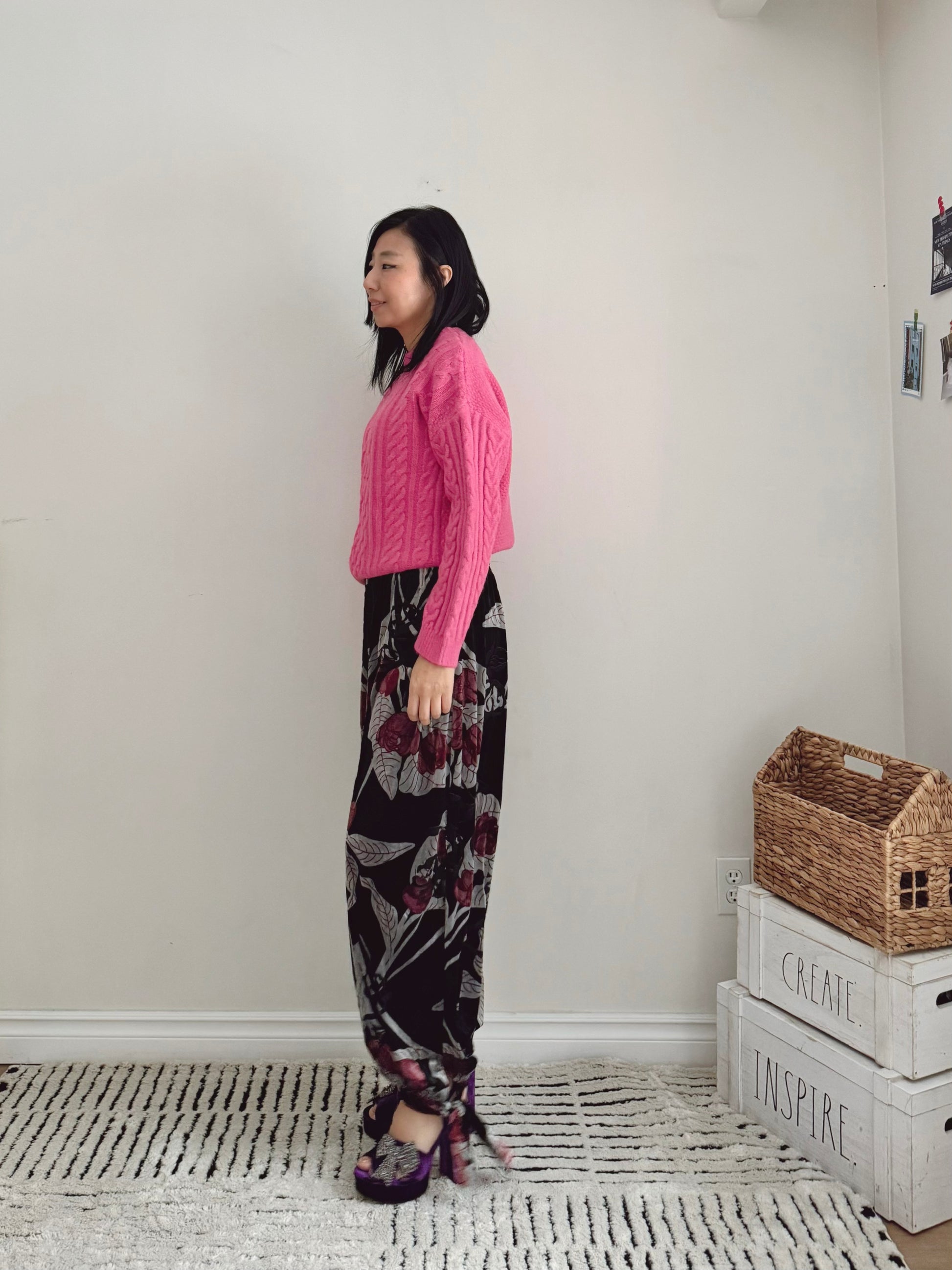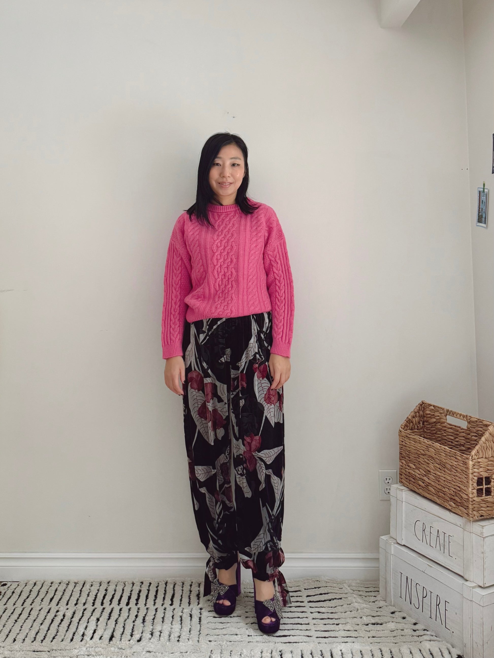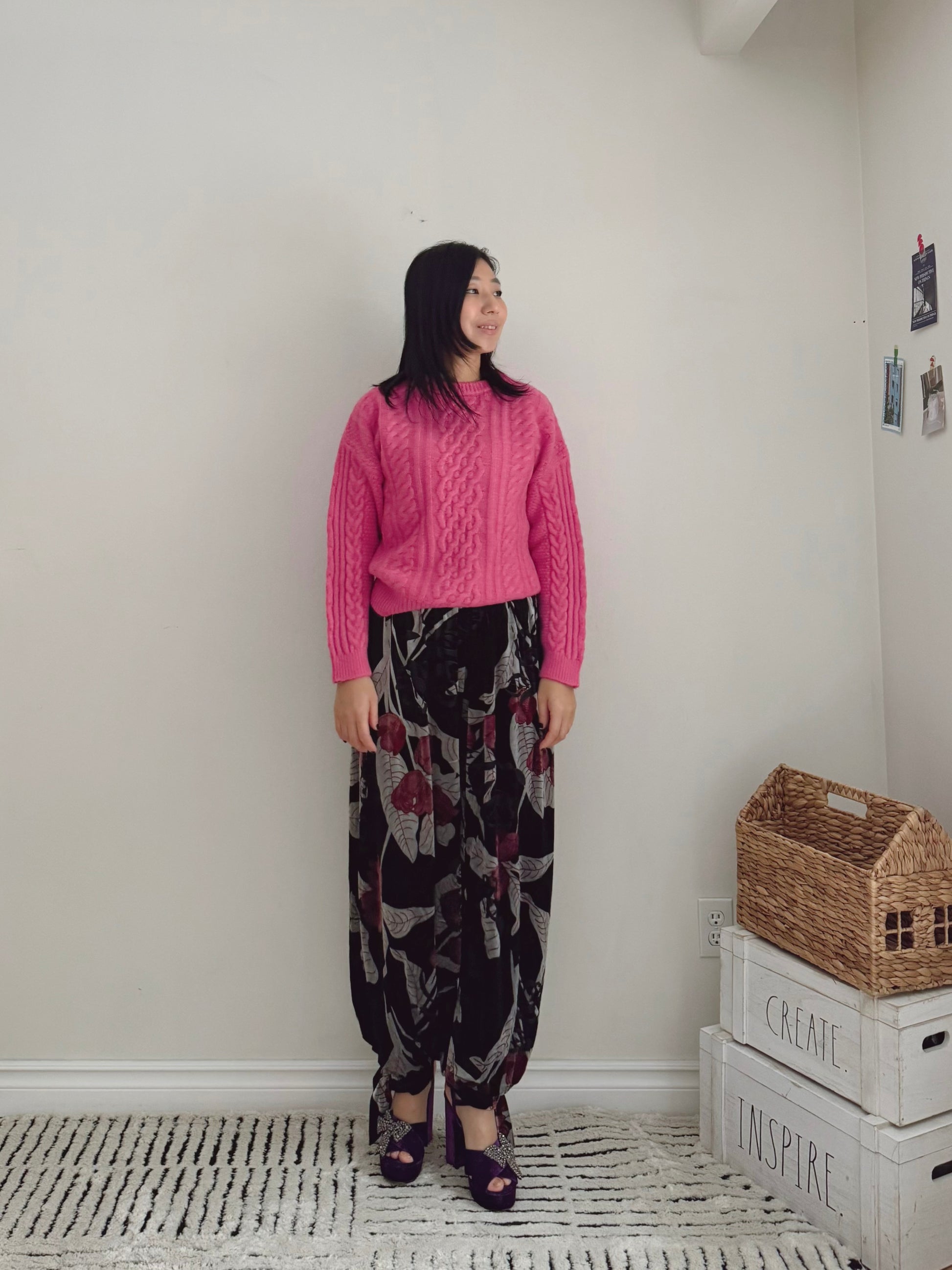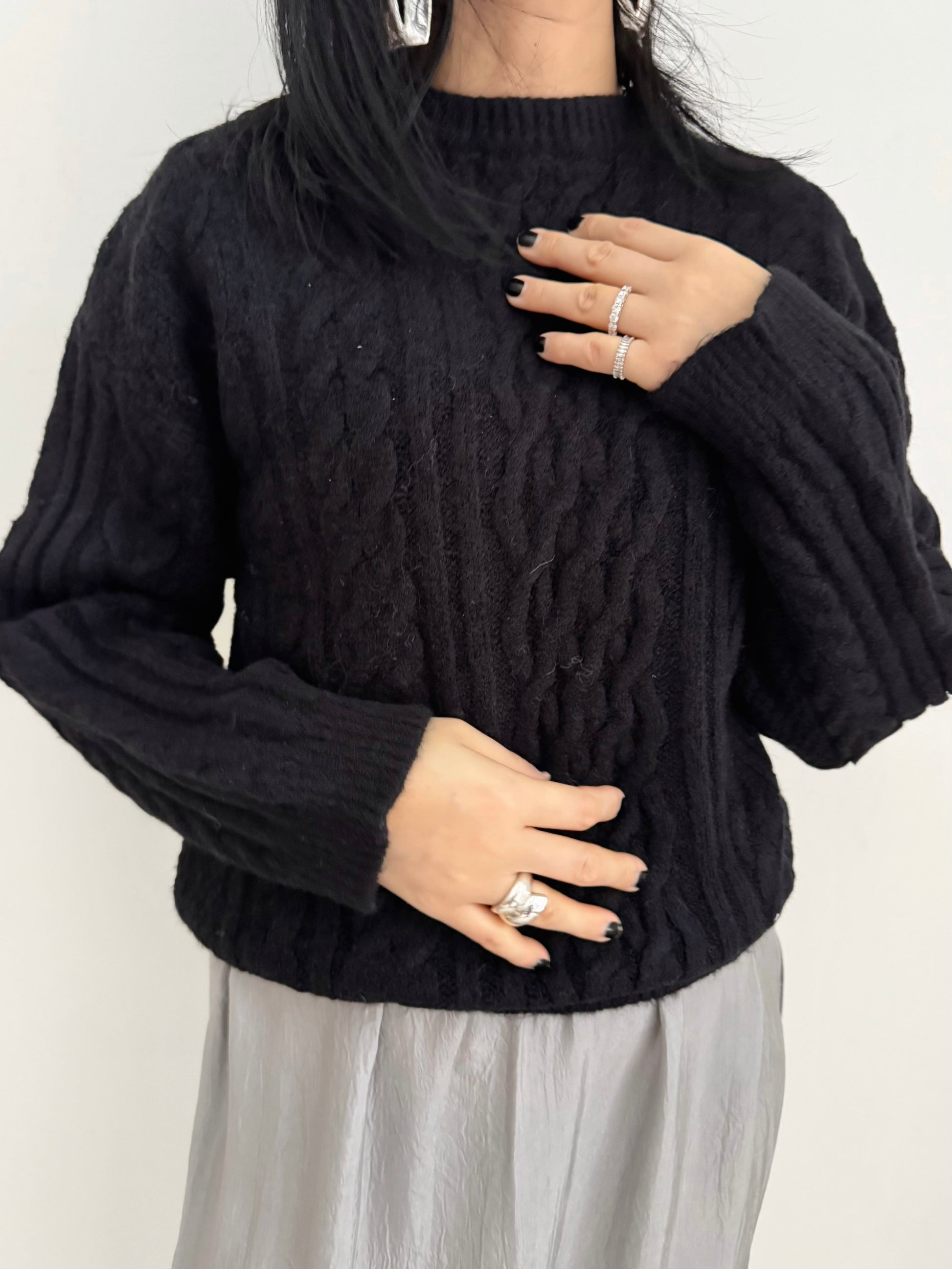 CABLE ROUND KNIT(pink , green, black )