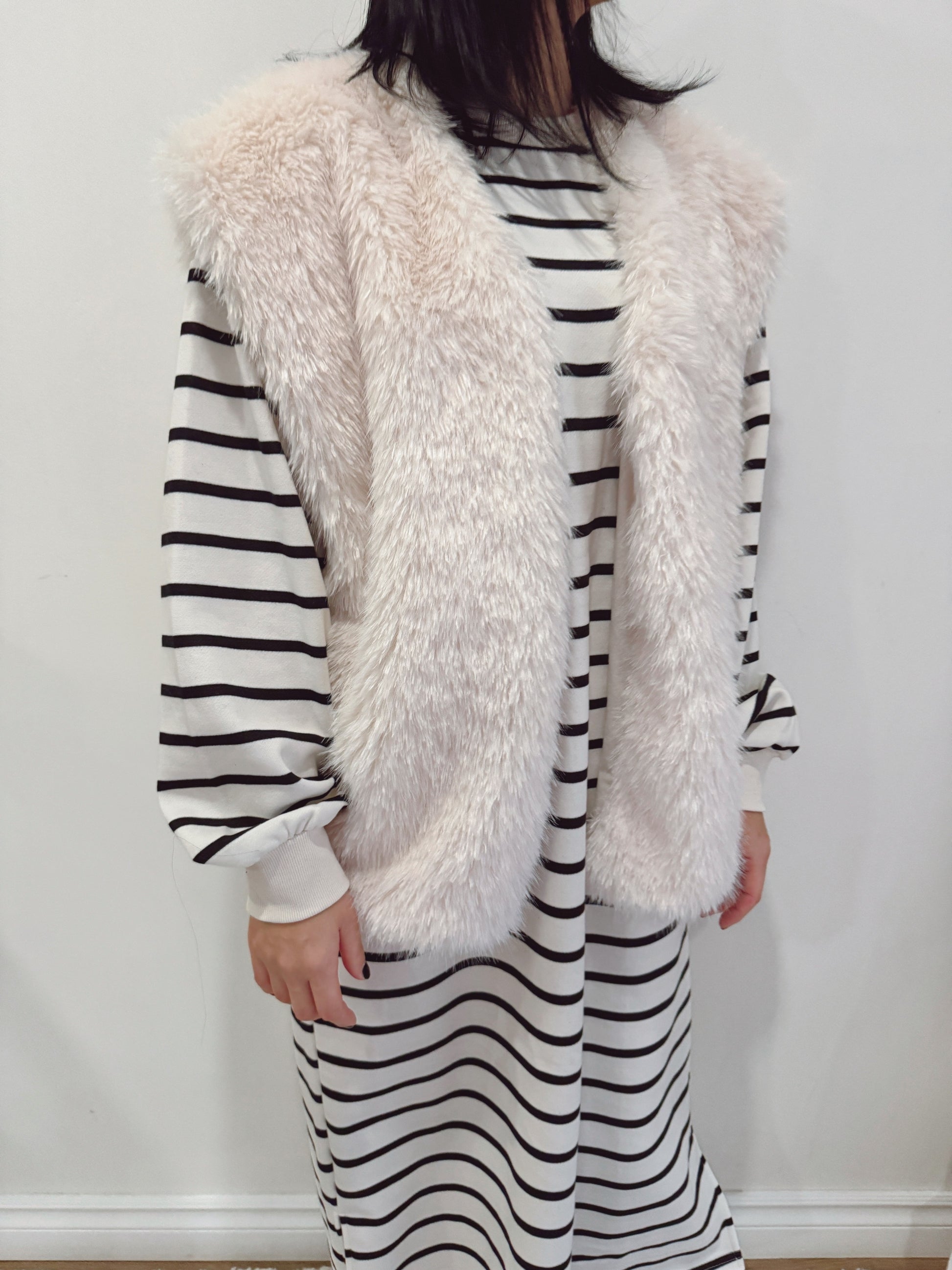 Moncher Fur Vest( ivory, beige)